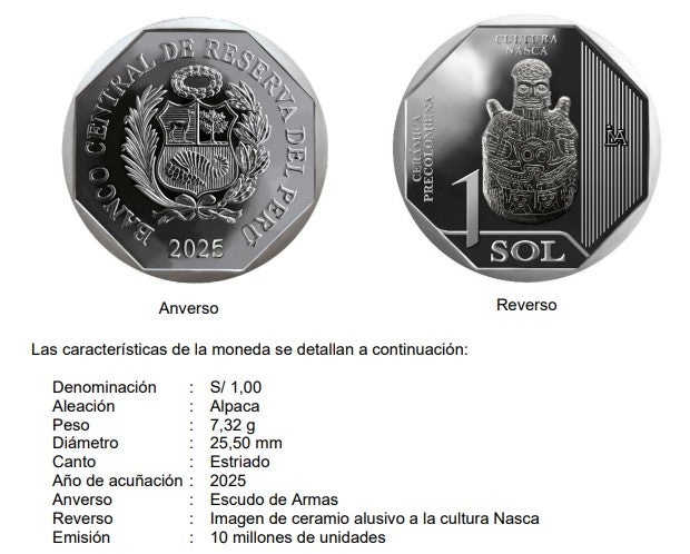 La nueva moneda, que forma parte de una colección de 11 piezas, se incorpora al uso cotidiano como medio de pago legal, circulando simultáneamente con las actuales. Según el BCR, esta iniciativa busca que más peruanos reconozcan y valoren la riqueza histórica del Perú a través de objetos de uso diario. La entidad destacó que la cerámica Nasca, conocida por su policromía, temas abstractos y elevado nivel técnico, representa uno de los legados artísticos más complejos de la costa sur peruana.